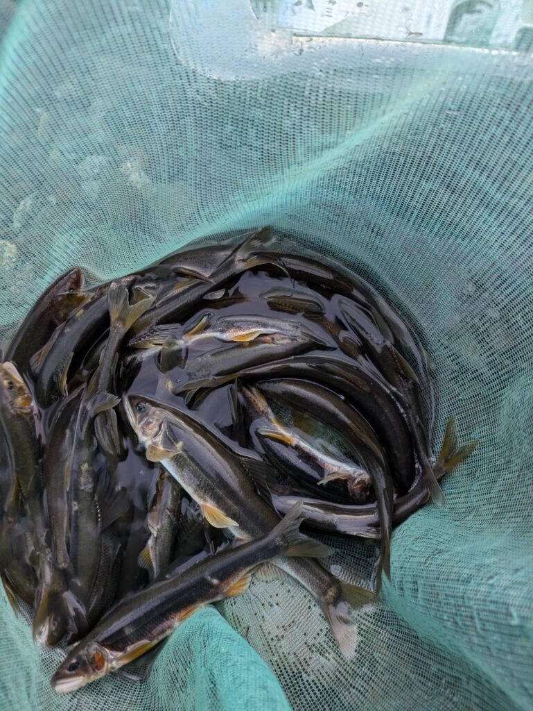 鮎の産卵場所狙いで、
