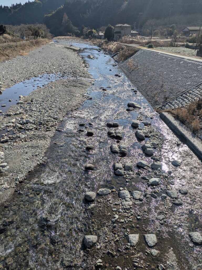 ブロック底と石が点在する瀬からチャラ瀬へと続く。深澤島橋から180m程上流。