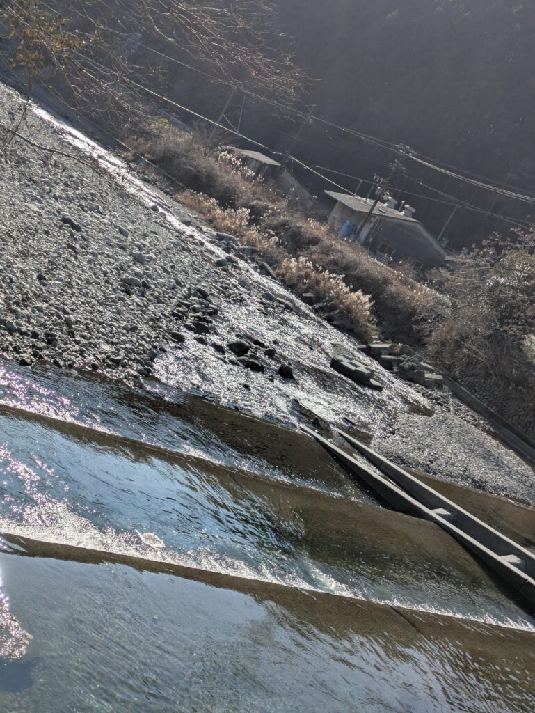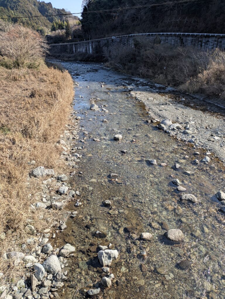 石が点在するチャラ瀬。寺尾島橋から200m程下流