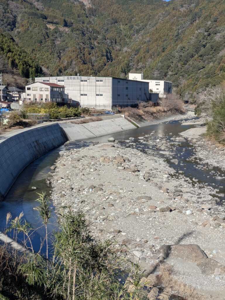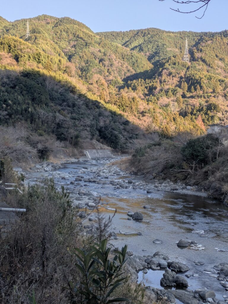 大石が点在する岩盤底のトロ場からチャラ瀬、淵。漁協裏から川沿いで900m程下流。